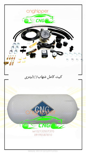 کیت کامل شامل مخزن رگلاتور شیر مخزن پایه پرکن امولاتور یا شیر بنزین لوله فولادی کلید و سیم گیج و سیم و کلیه متعلقات جهت نصب و راه اندازی